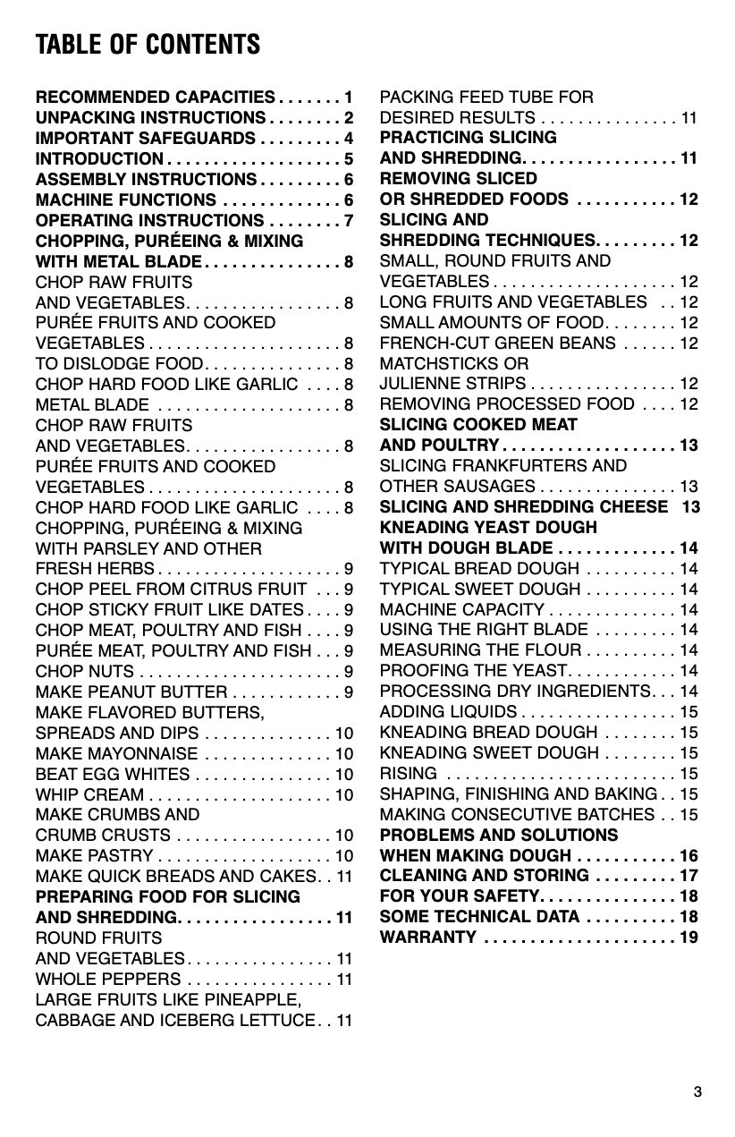 Includes care, use and assembly instructions and many recipes .