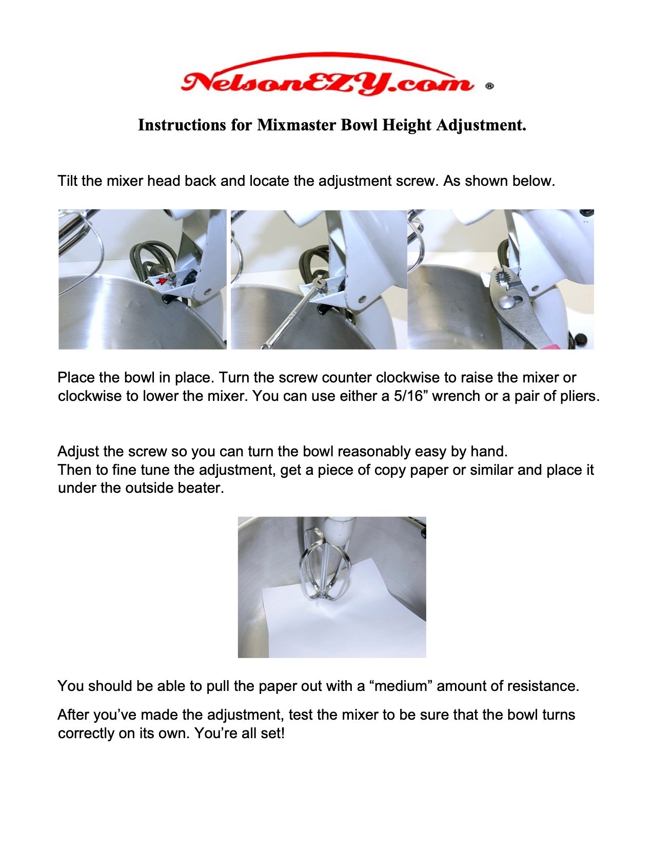 This is a guide you can use to adjust the height of your vintage Mixmaster.