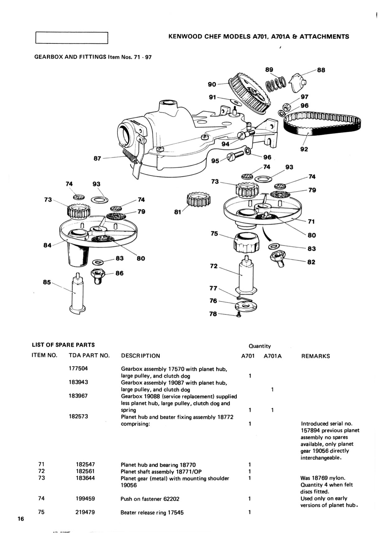 Kenwood Service Manual For Chef Models A.701 / A.701A - (Download).