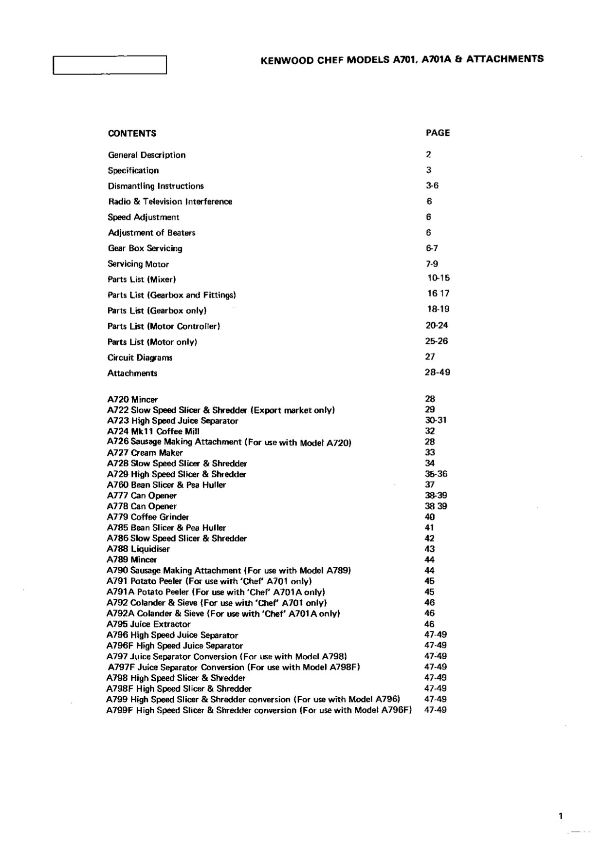 Kenwood Service Manual For Chef Models A.701 / A.701A - (Download)