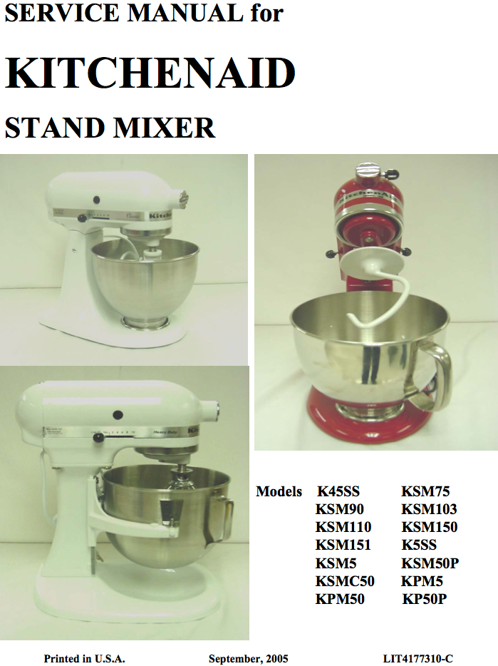 KitchenAid Service Manual For K45SS,KSM90,KPM50 and Many Others - (Download).